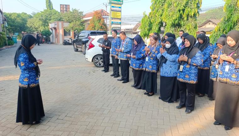 Kegiatan apel pagi diakhiri dengan doa bersama sebagai bentuk harapan agar seluruh aktivitas pelayanan kesehatan yang dilakukan dapat berjalan lancar dan memberikan manfaat maksimal bagi masyarakat.